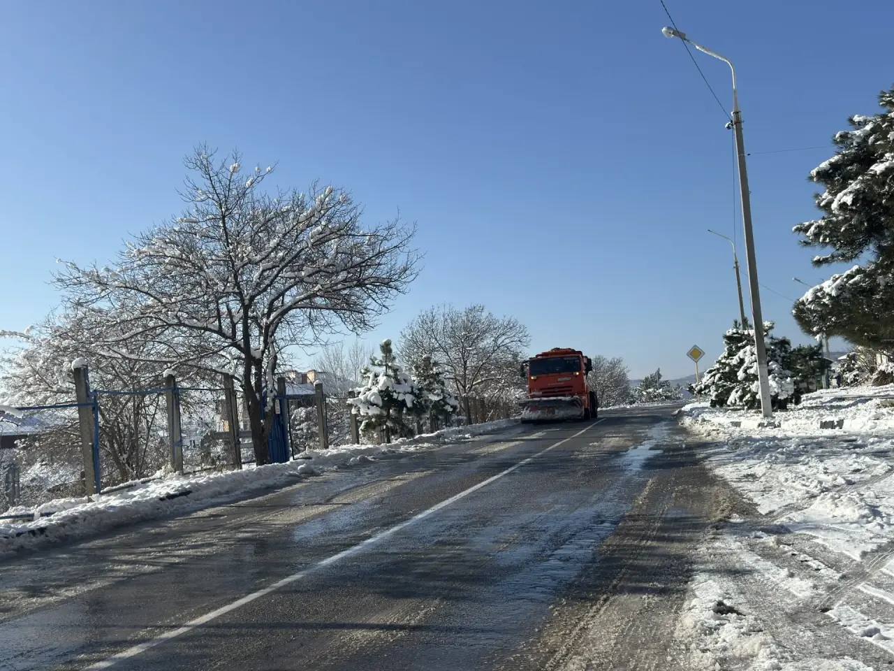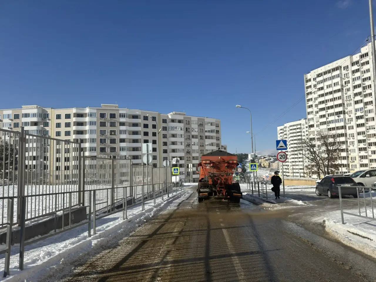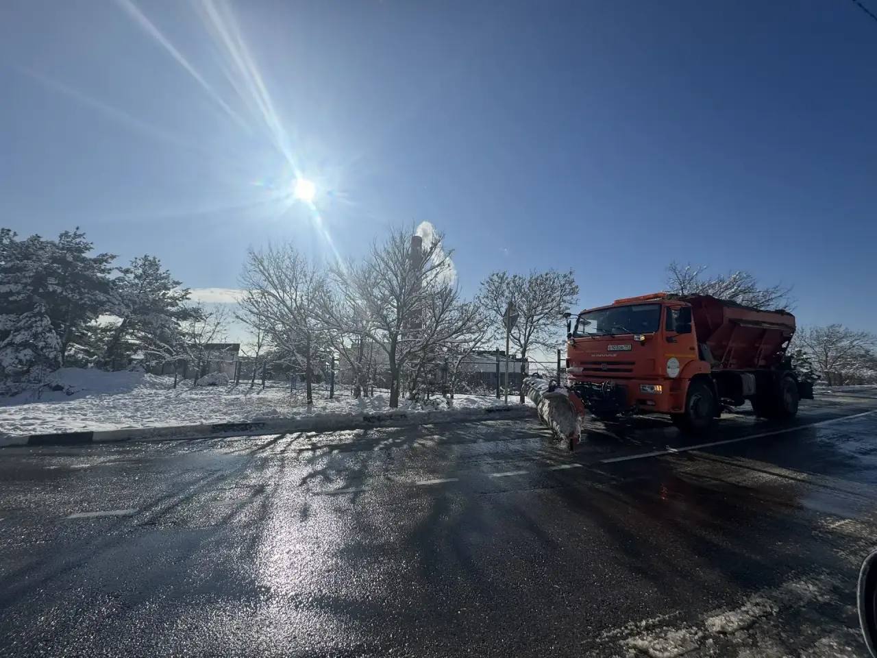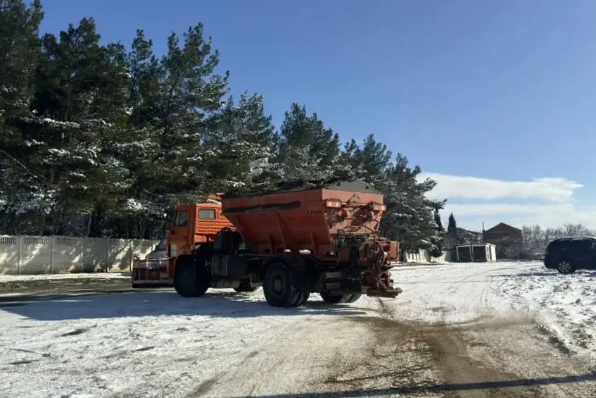 В Геленджике продолжается посыпка дорог противогололедной смесью