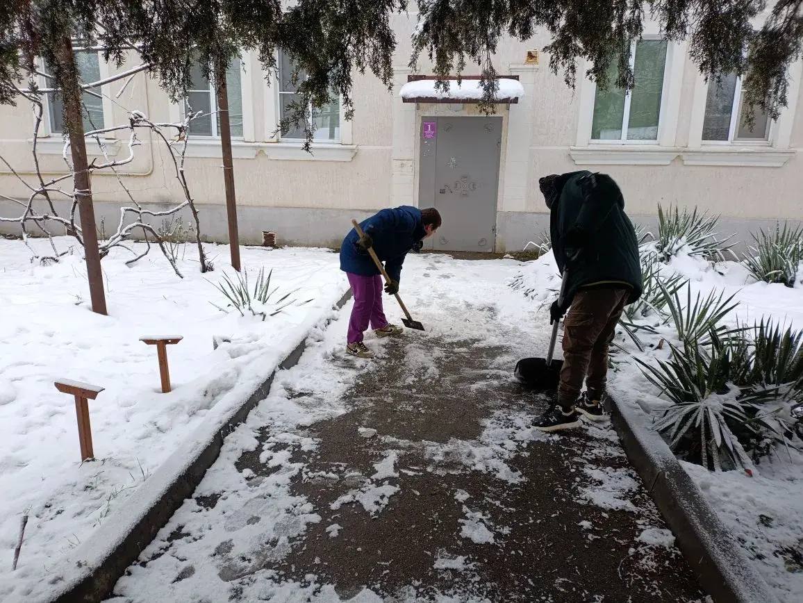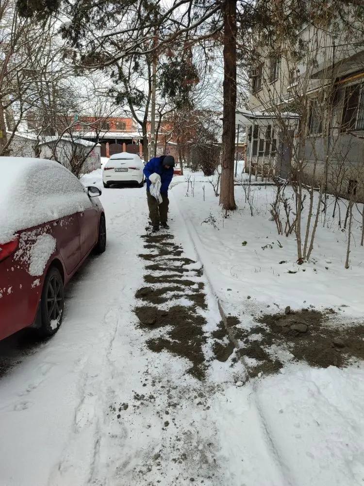 Управляющие компании расчищают от снега и наледи дворы многоквартирных домов, обрабатывают дорожки к подъездам.