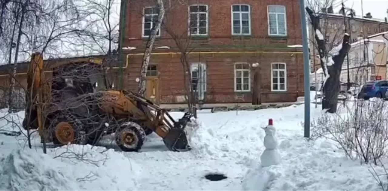 Водитель снегоуборочного трактора стал звездой сети благодаря доброму поступку. Во дворе дома он заметил снеговика и вместо того, чтобы снести его, аккуратно перенёс в безопасное место и даже погрозил пальцем.