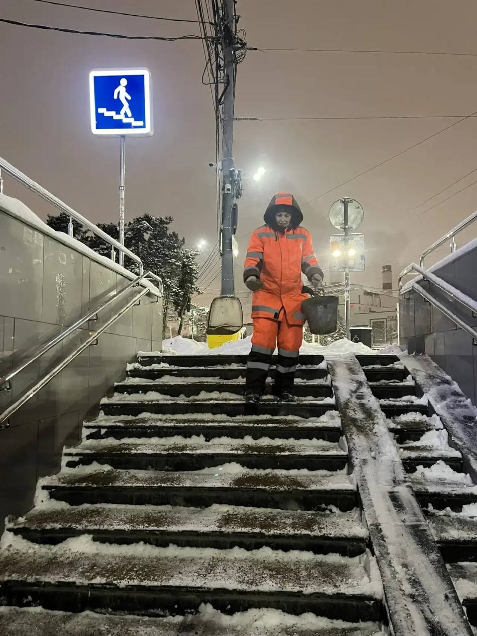 Также продолжается работа по очистке от снега тротуаров, остановочных павильонов, подземных и надземных переходов. Кроме того, коммунальные службы пополнят запас песко-соляной смеси в контейнерах.