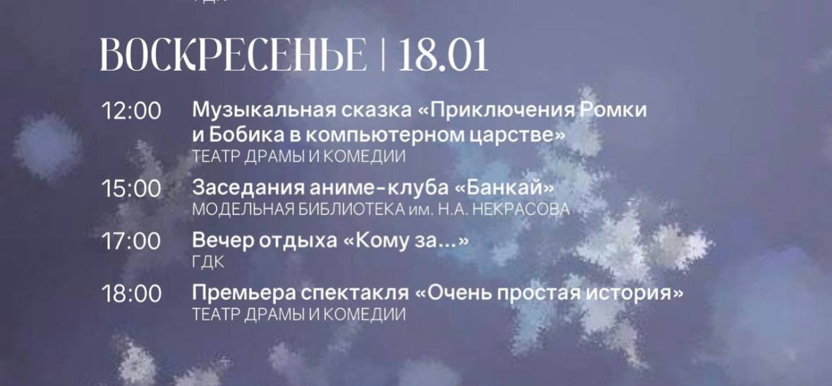 АФИША МЕРОПРИЯТИЙ НА ВОСКРЕСЕНЬЕ