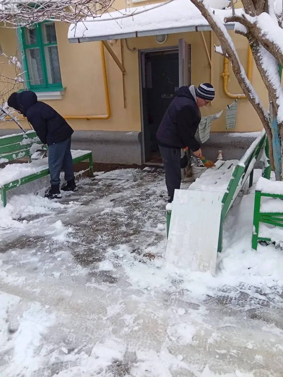 Они очищают пешеходные дорожки и лавочки во дворах, проводят обработку путей следования горожан песком. Особое внимание уделяется тем территориям, где живут пожилые люди.