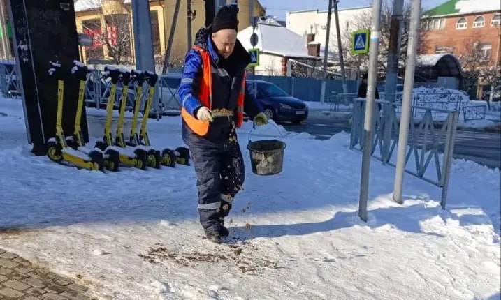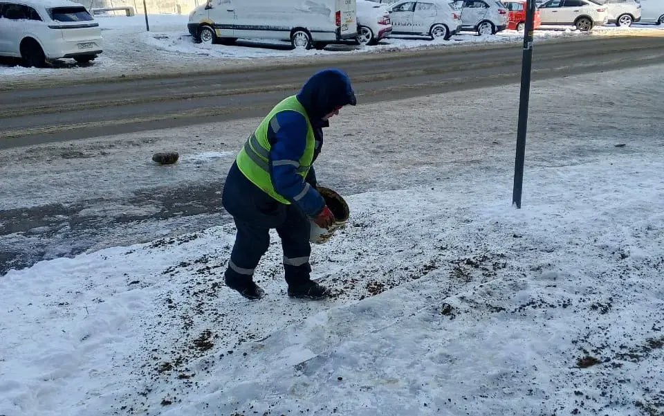 Им в помощь на территории внутригородских районов определены места размещения дополнительных объемов пескосоляной смеси. Ею могут воспользоваться все, кто готов помочь в устранении гололеда и снежного наката на тротуарах и дорогах города.
