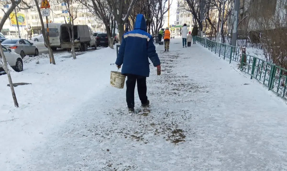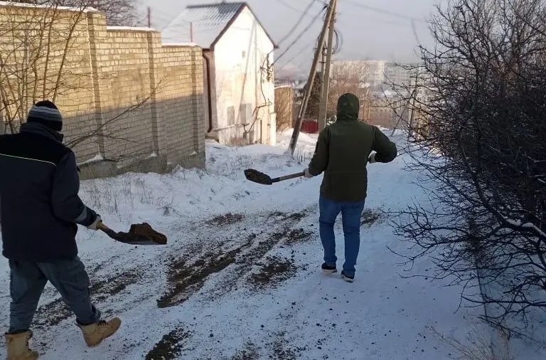 Минусовая температура и сильные порывы ветра делают передвижение по заледенелым тротуарам особенно опасным. Там, где коммунальные службы и бригады добровольцев еще не успели очистить дороги и пешеходные маршруты от снежной наледи и гололеда, на помощь приходят активисты органов местного самоуправления и жители города.