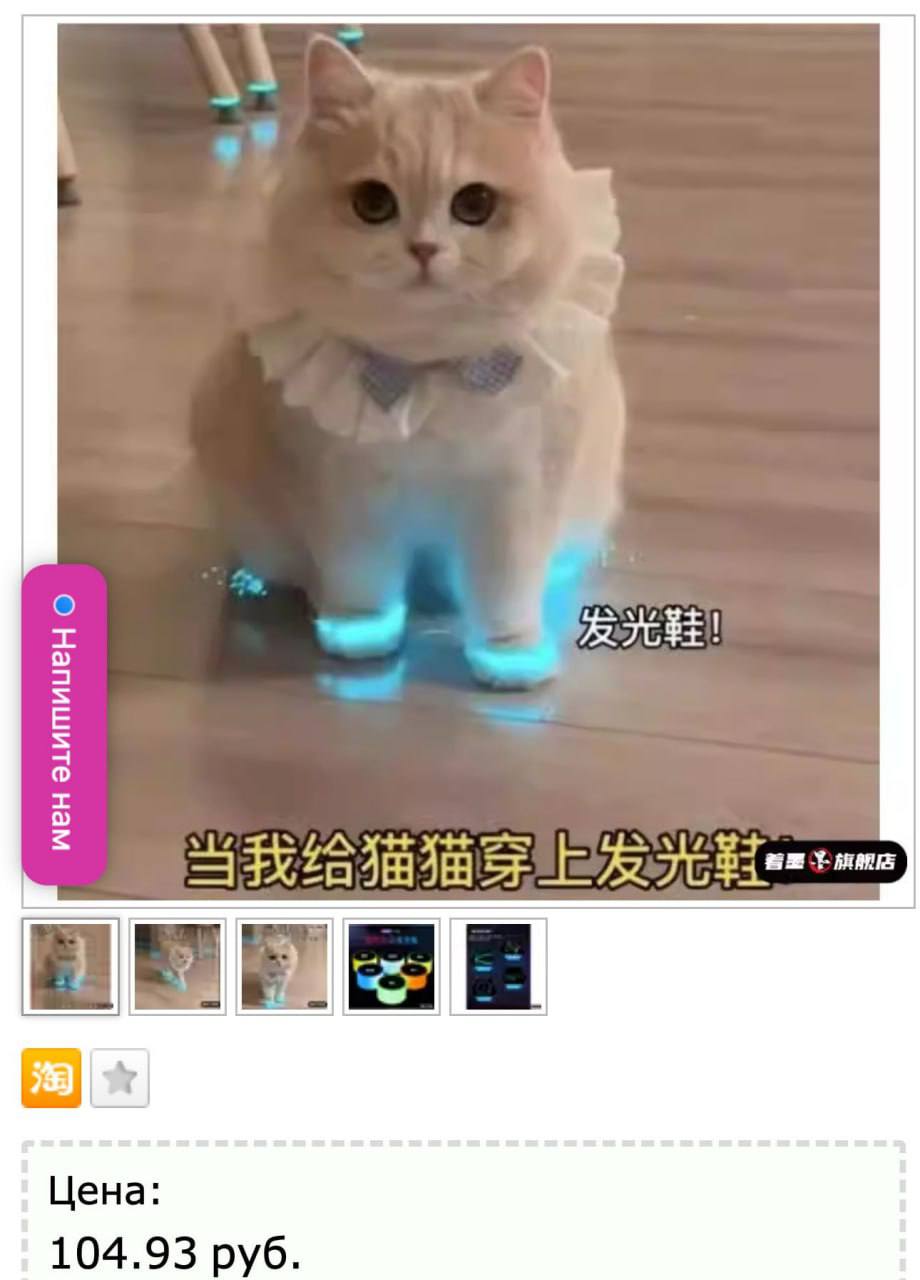 Светящиеся «тапочки» для котиков нашли на китайских маркетплейсах —в них пушистые лапки превращаются в маленький маячок.