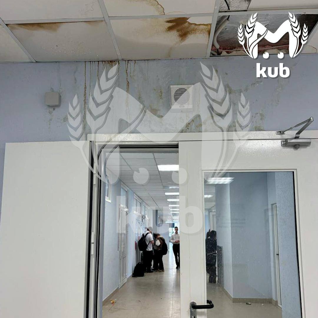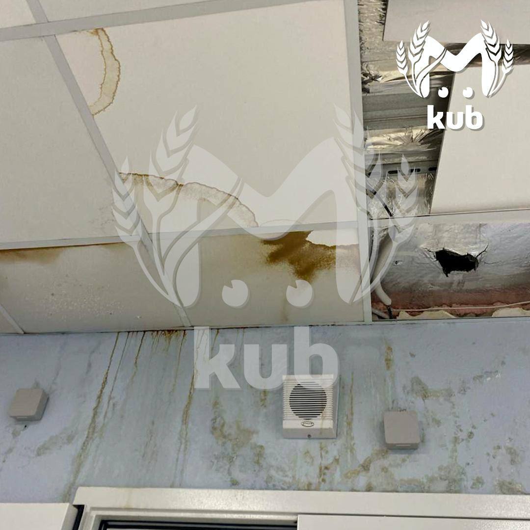 Родители учеников рассказывают, что потолки дали течь во время ливней пару недель назад. В классах пришлось ставить ведра и протирать полы от луж.