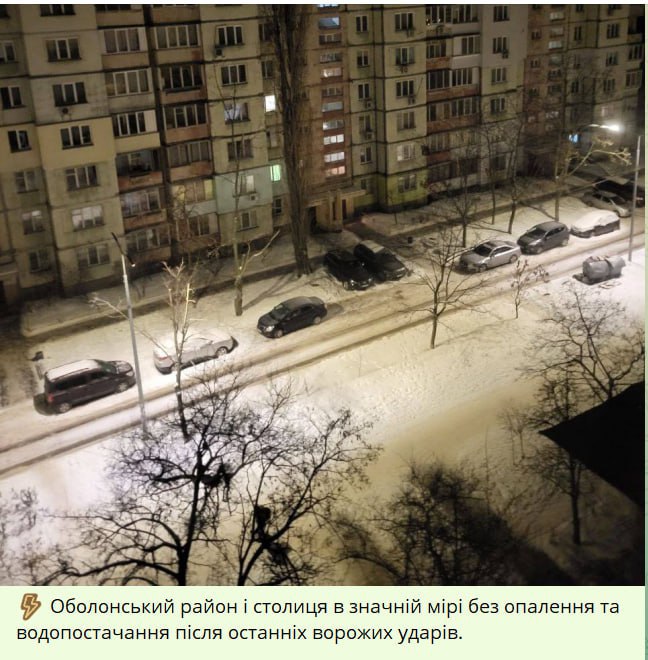 При этом, как сообщается, в первой половине дня отопление в районе было, и его не называли среди тех, которые пострадали от ночного удара. По сообщениям местных, «Киевтеплоэнерго» и ЖЭК не могут назвать причину отключения.