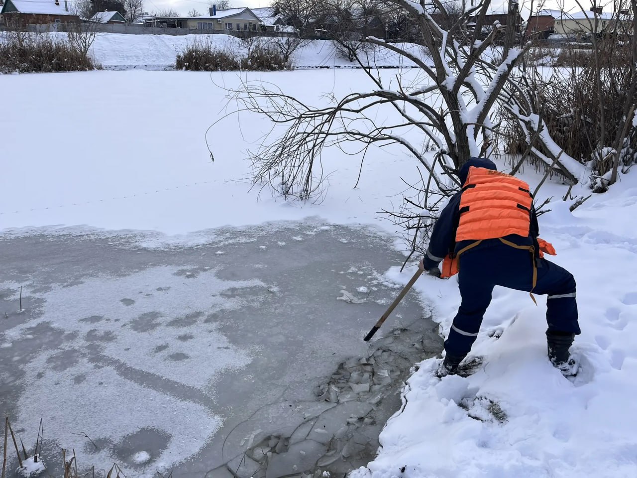 Для обеспечения безопасности горожан спасатели обкалывают кромку льда на городских водоёмах и сбивают наледь с крыш зданий.
