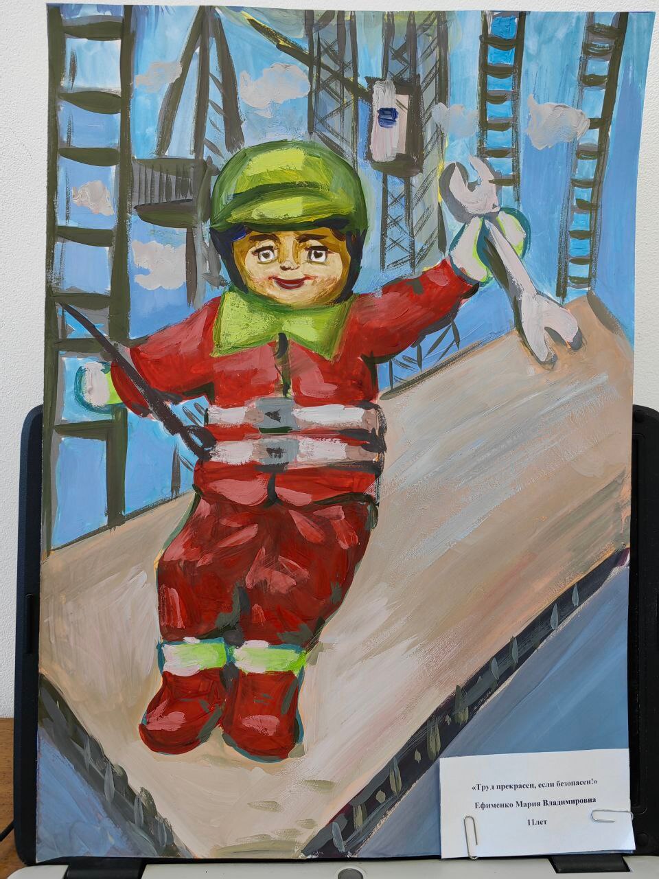 В номинации «Безопасный труд глазами детей» (рисунки) в возрастной категории от 7 до 12 лет победила Ефименко Мария Владимировна, 11 лет, МБУ ДО ДШИ п. Октябрьский;