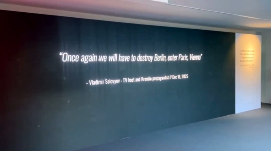 На стенде моделируют возможную бомбежку Россией того самого Давоса. Презентация начинается с фразы «Некоторые говорят, что этого не может быть. Но что если может?»