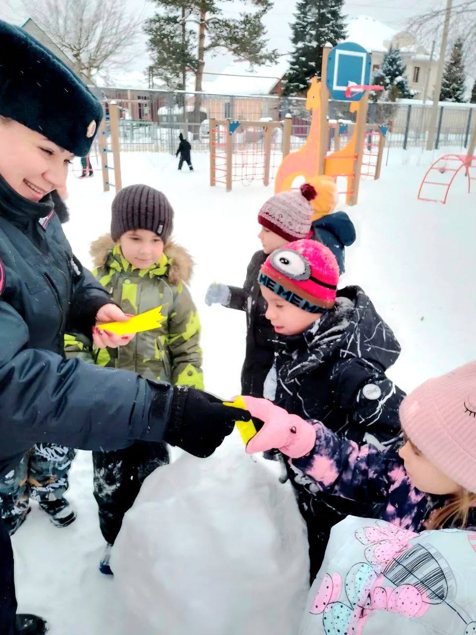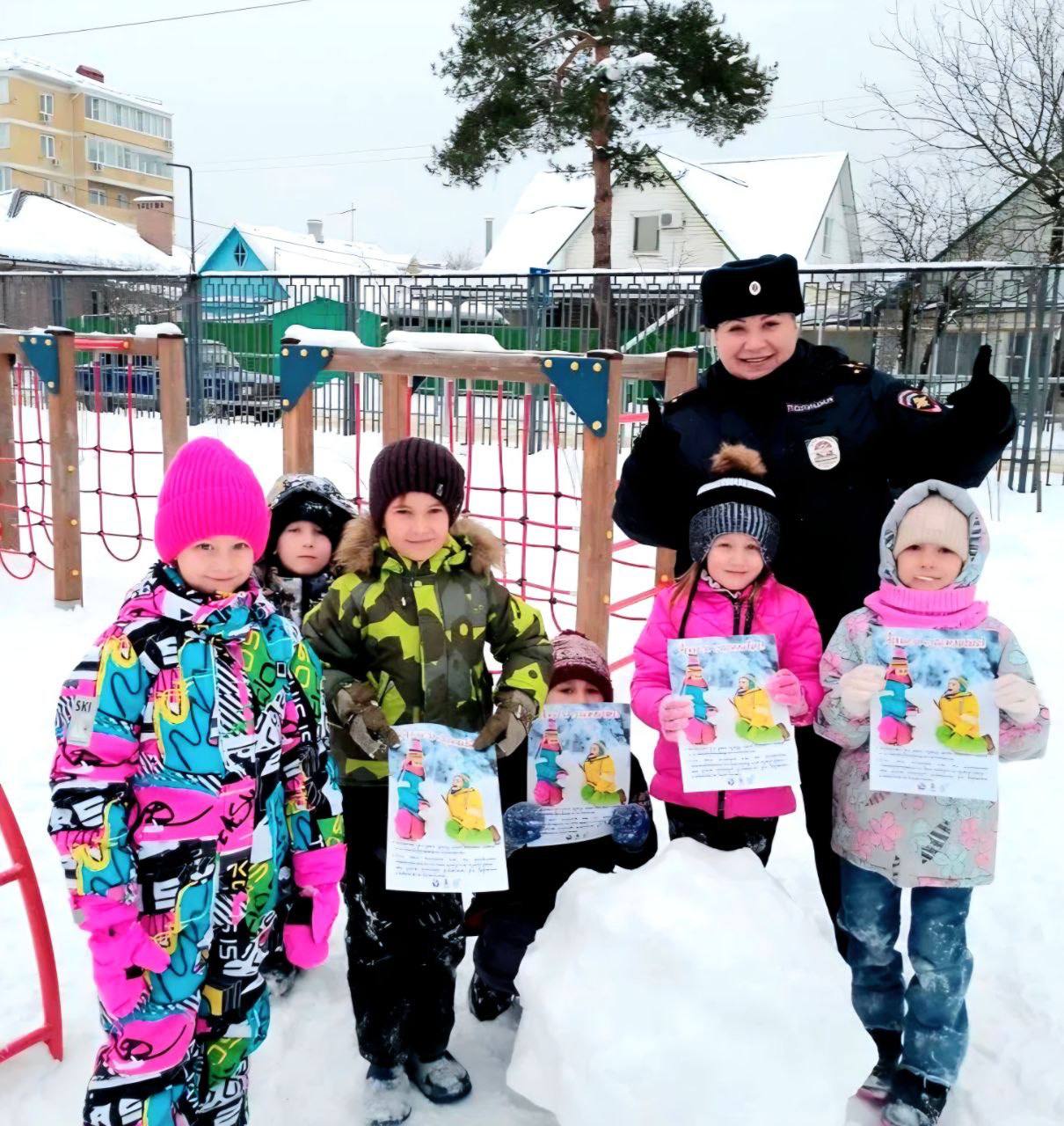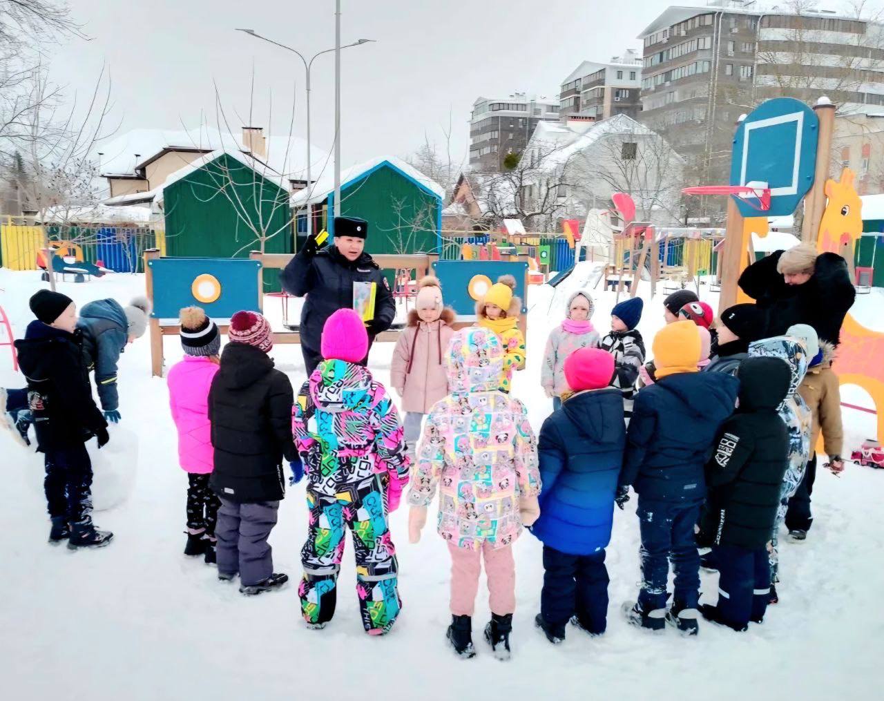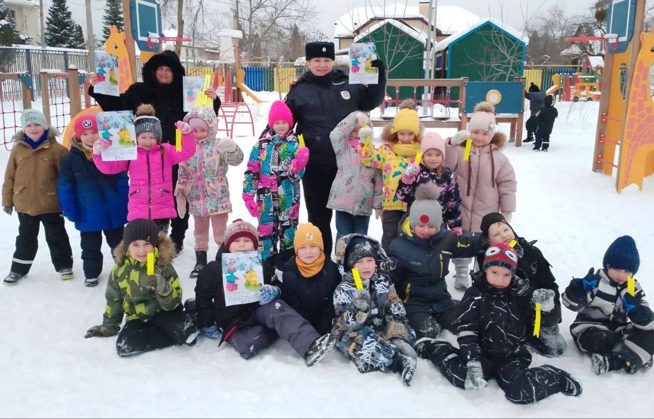 Полицейские напомнили детям требования Правил дорожного движения, которым должны следовать пешеходы, рассказали о значениях сигналов светофора, дорожных знаков и объяснили опасность игр вблизи проезжей части в зимний период времени.