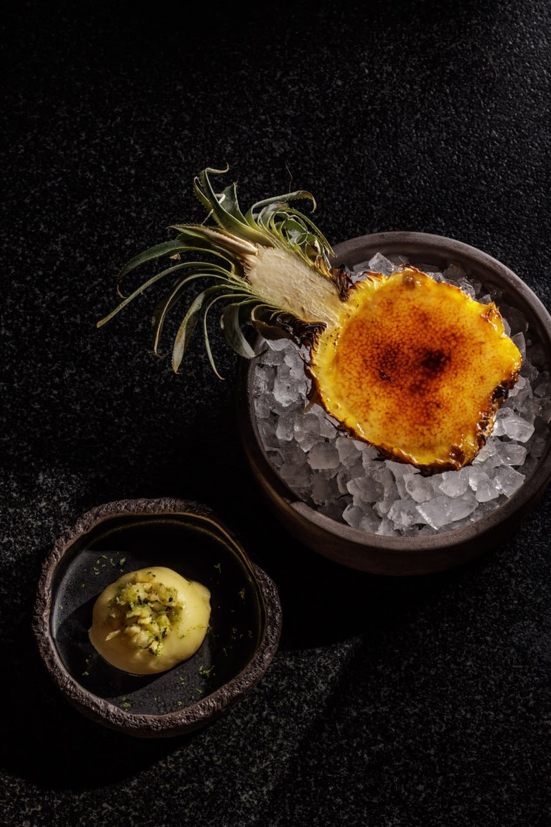 Далее следует основное блюдо, которое выводит восприятие на новый уровень: антикучос из куриных сердечек, форель, запеченная на березовом полене, и говяжье ребро, сопровождаемое душистым соусом. Завершит трапезу десерт — крем-брюле, поданное в ананасе, а также перуанский шоколад с соленой карамелью в виде индейских масок.