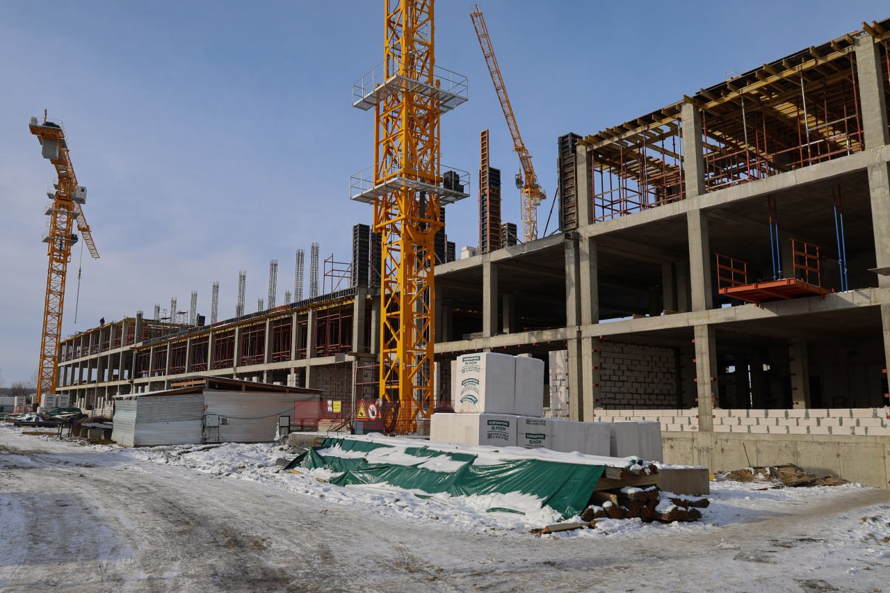 В школе на улице Заполярная приступили к работам по устройству монолитного железобетонного каркаса на блок-секциях 2 и 3 этажа. Одновременно ведутся работы по возведению наружных стен на 1 этаже. Также рабочие приступили к устройству фундаментной плиты здания бассейна.