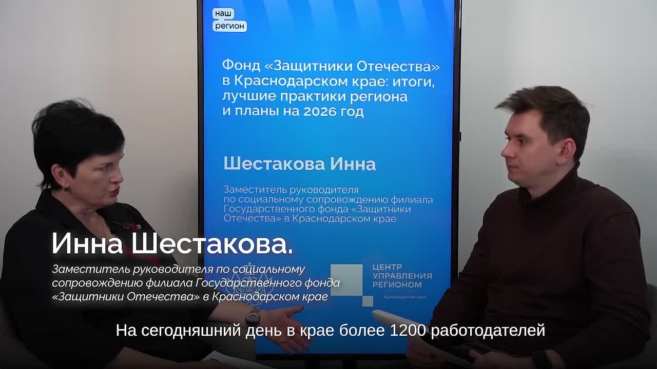 Подробнее о работе организации на совместном прямом эфире с ЦУР рассказала заместитель руководителя по социальному сопровождению филиала Государственного фонда «Защитники Отечества» в Краснодарском крае Инна Шестакова.