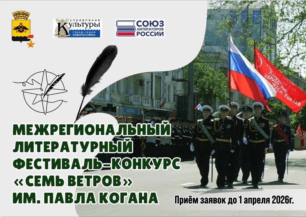 Управление культуры Новороссийска и Союз литераторов России с гордостью и радостью открывают приём заявок на первый Межрегиональный литературный фестиваль-конкурс «Семь ветров» имени Павла Когана!