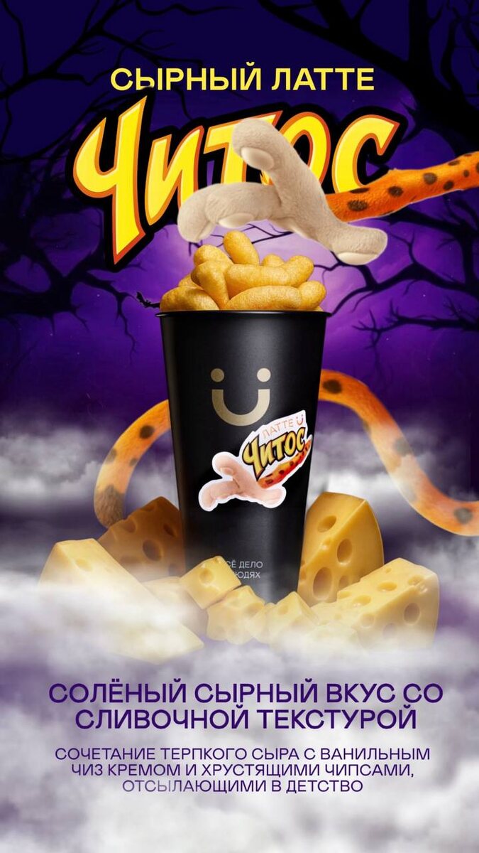 Если вы в поисках чего-то необычного, это сочетание точно стоит попробовать! Сырный латте с Читосом - интересная трактовка привычных ингредиентов, и, возможно, именно оно станет вашим новым любимым напитком этой осенью.