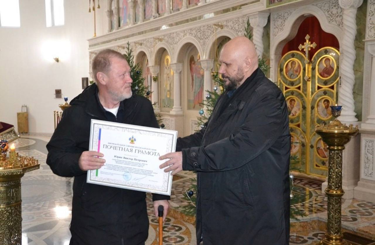 Андрей Горбань вручил почетную грамоту председателя Законодательного собрания края бывшему атаману Новороссийского РКО Виктору Юрину, участнику СВО с 2022 года, кавалеру ордена Мужества и многих боевых наград, сегодня проходящему реабилитацию после ранения. В грамоте указано: «За большой личный вклад в организацию сбора и доставки гуманитарной помощи добровольцам Кубанского войскового казачьего общества, высокую личную гражданскую ответственность, а также деятельность, направленную на сплочение общества, для достижения целей специальной военной операции и участия в ней».
