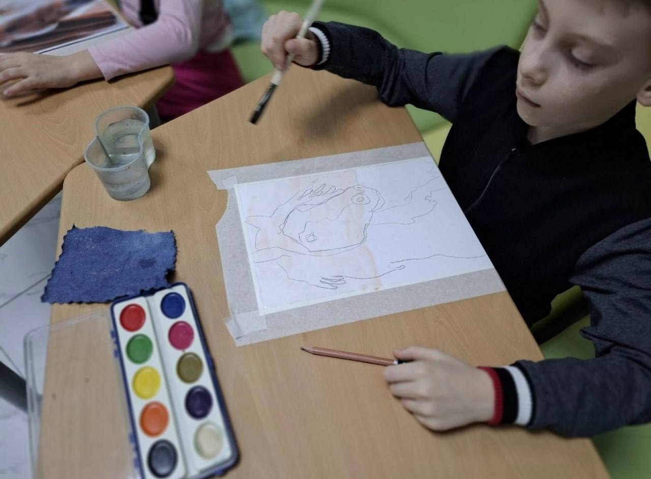 Ребята с энтузиазмом взялись за кисти, стремясь воплотить на бумаге образ грациозного животного. Особый интерес вызвала техника рисования «по-мокрому». Это метод, при котором акварель наносится на предварительно увлажненную бумагу, позволяя создавать мягкие, растекающиеся эффекты и плавные переходы цвета.