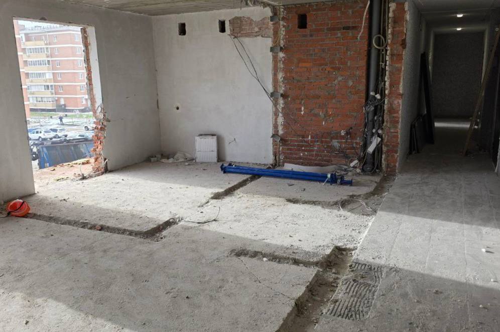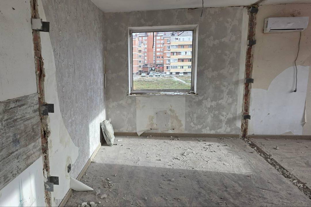 Строители возводят новые перегородки в поврежденных квартирах