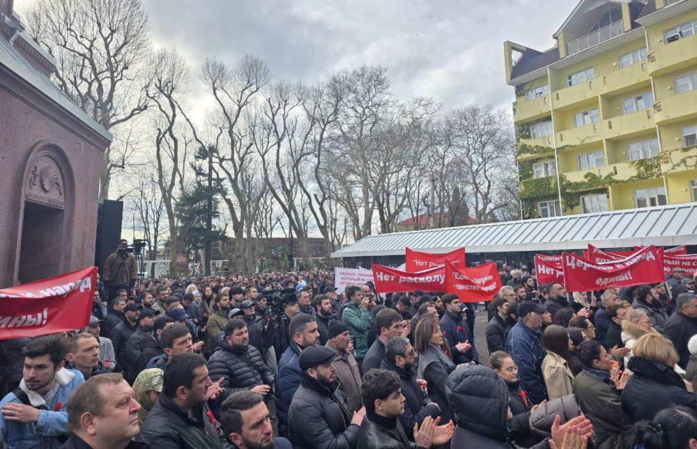 На акции выступил заместитель руководителя Армянской общины Краснодарского края Геворг Саакян. Он призвал жителей не допустить раскола церкви.