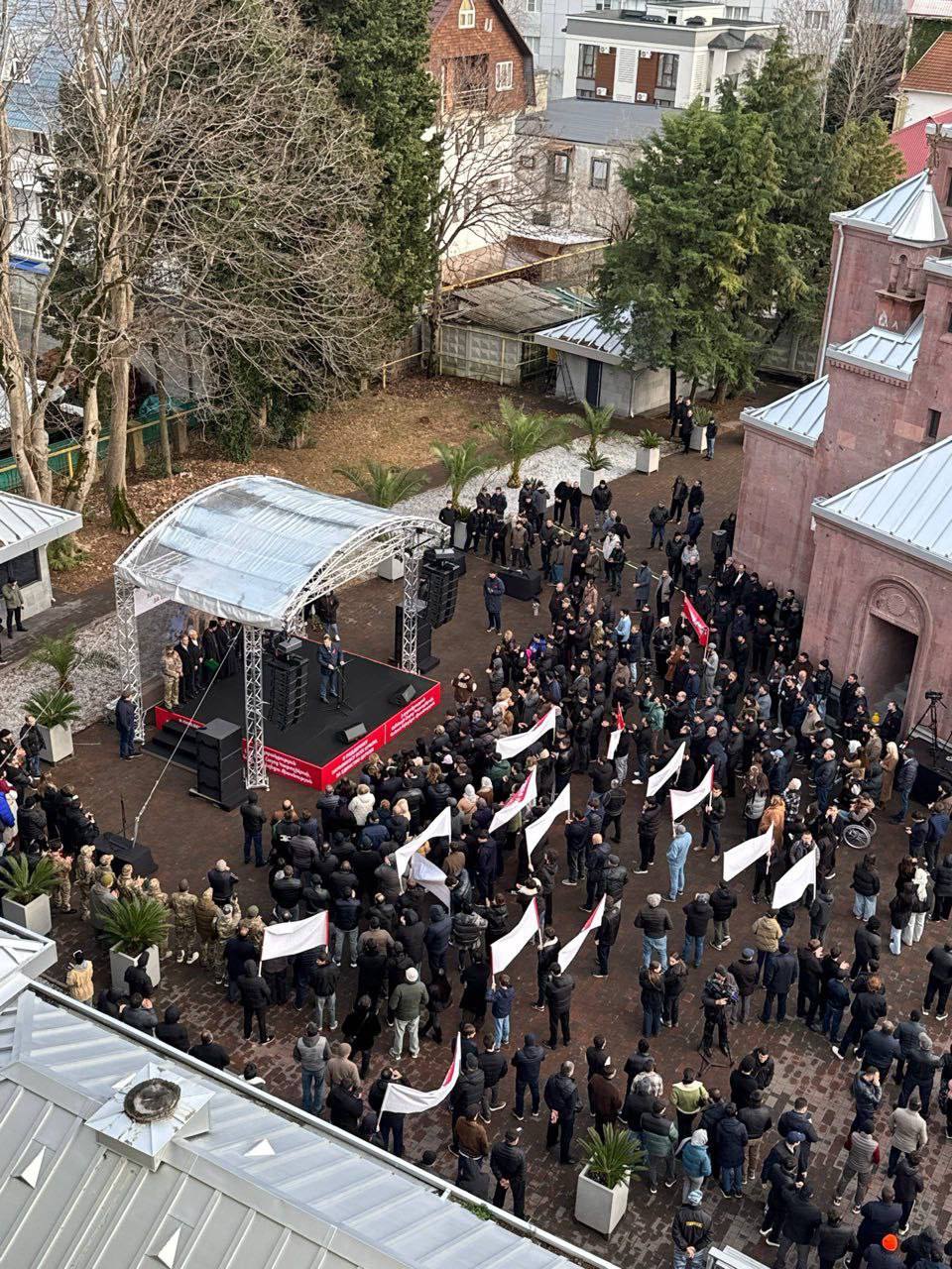 Больше полутора тысяч человек вышли к армянской церкви "Суб Саркис" в Адлере и дружно повторяли: "Нет расколу", "Единство Церкви — единство народа", "Церковь и народ едины", "Наш Каталикос — Гарегин II".