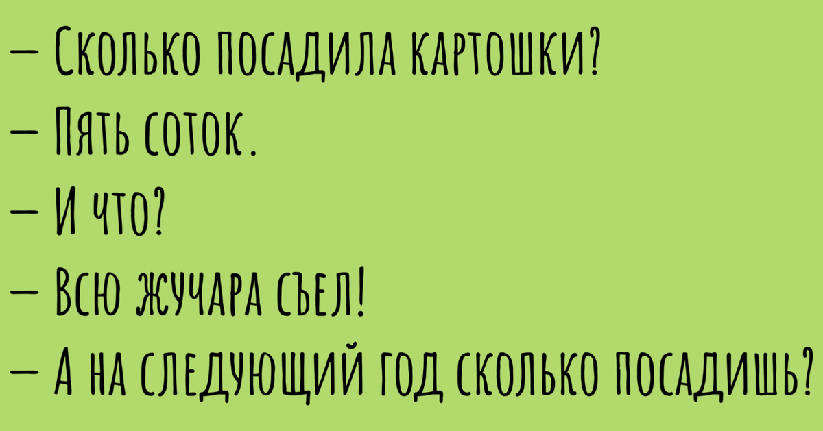 — Отлично! Один мешок посадил, один собрал, и ни одной картофелины не пропало!