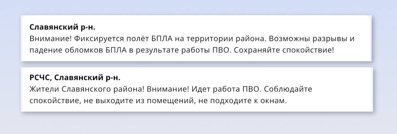 Обломки БПЛА повредили три дома в Славянске-на-Кубани Во всех случаях пострадавших нет. Из-за падения фрагментов беспилотников в трех домах выбило окна, в одном из них также повреждена кровля. На местах работают оперативные и специальные службы.// Оперативный штаб - Краснодарский край