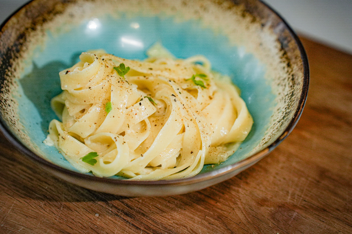 Паста «Альфредо» появилась в начале 20 века в Риме, когда шеф-повар Альфредо Ди Лелио создал это блюдо в честь своей жены после рождения их первого ребенка. Подаваемая с пармезаном и под аккомпанементом золотых столовых приборов, она быстро завоевала популярность.