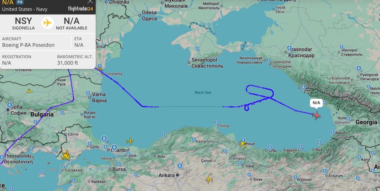 Американский P-8A Poseidon в эти минуты работает крайне близко к Сочи и военно-морской базе в Новороссийске.