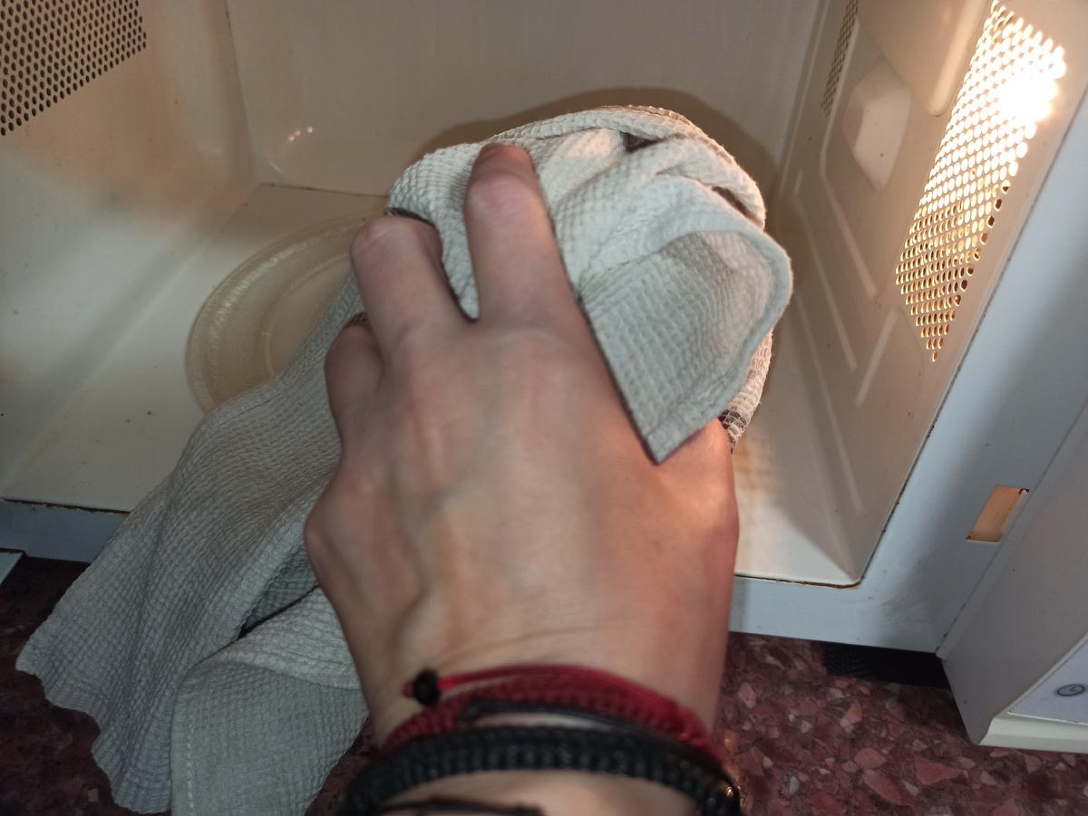 После двух минут на слабом–среднем нагреве пакет достают, дают полотенцу остыть и аккуратно прополаскивают. Результат проявляется в более чистой ткани и отсутствии стойких пятен, если этот прием использовать периодически.