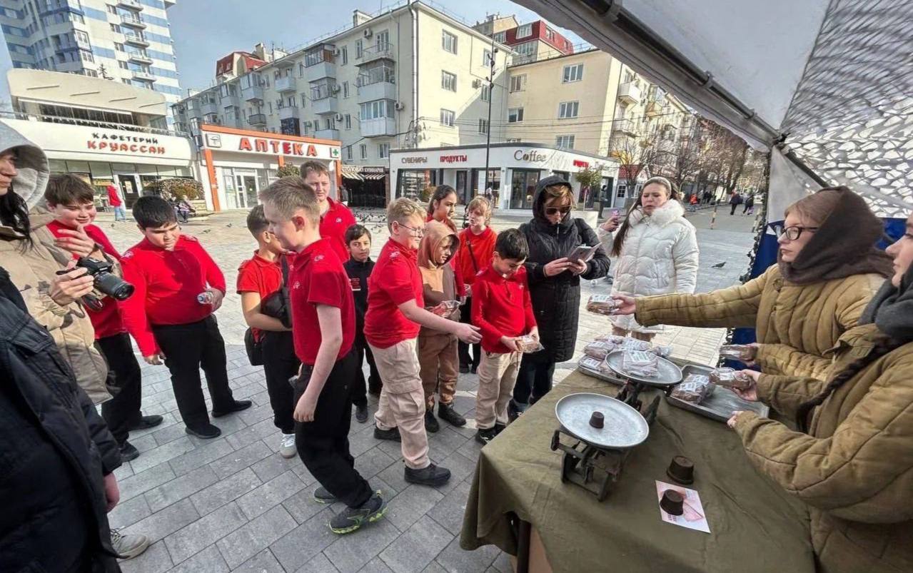 К памятной дате работники Анапского хладокомбината испекли хлеб, разделив его на 800 порций. Каждый кусочек весит всего 125 граммов – именно такое количество хлеба раз в сутки выдавали одному жителю блокадного Ленинграда. В рамках акции «Волонтеры Победы», воспитанники спортивно-тактического клуба «Грач» и представители ученического Совета раздали хлеб жителям и гостям курорта, а также рассказали историю осажденного города.