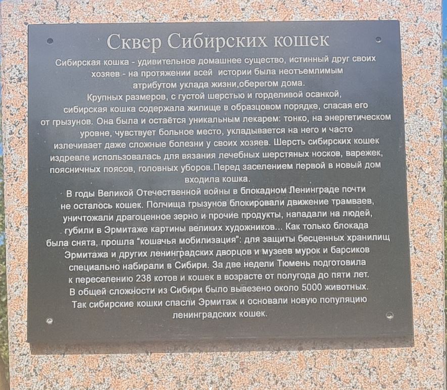 Эти пушистые бойцы в буквальном смысле спасали город. В 2000 году на Малой Садовой улице в Петербурге появились бронзовые кот Елисей и кошка Василиса, а в Тюмени в 2008 году появился "Сквер Сибирских кошек".