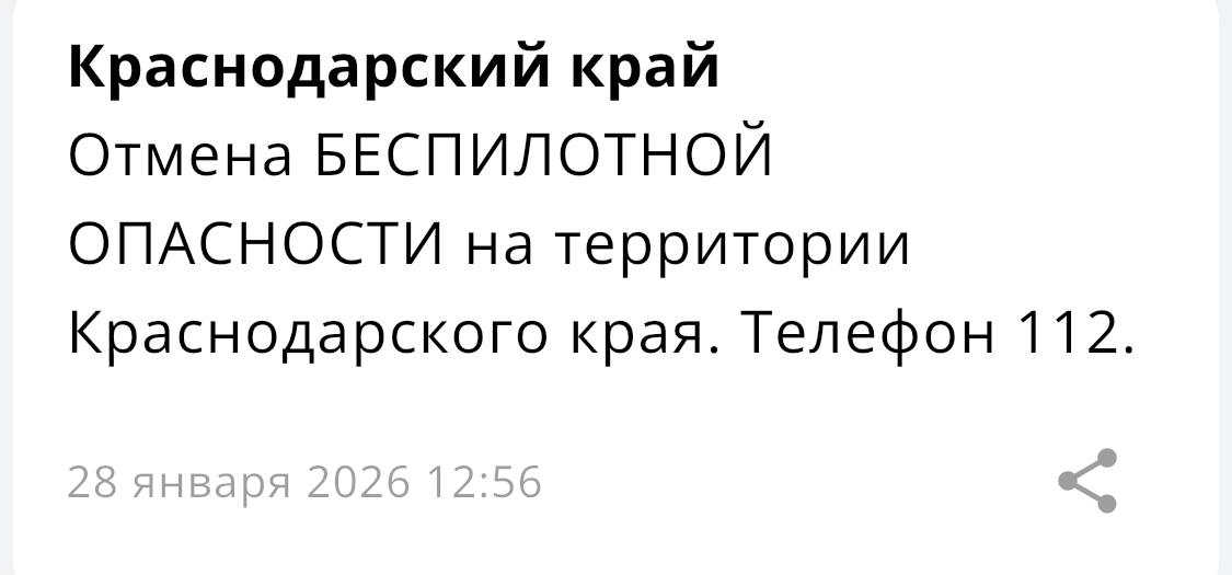 «Беспилотную опасность» отменили в Краснодарском крае
