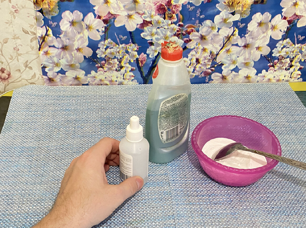 Сода выступает мягким абразивом, подрумянивая налет и оставляя поверхность без царапин. Перекись водорода добавляет эффект дезинфекции, а жидкое моющее средство помогает распрямлять жир и грязь. Пропорции не строгие: достаточно примерно четырех столовых ложек соды, одной столовой ложки перекиси и одной столовой ложки средства для мытья посуды, чтобы получить густую пасту похожую на густую сметану.