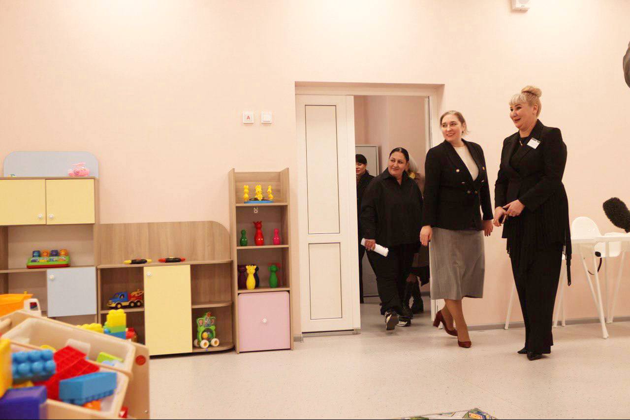 Заведующая Наталья Кордас рассказала, что персонал полностью укомплектован. Сейчас детсад посещают около 180 детей, набор продолжается. Созданы все условия для гармоничного развития ребят: работают 8 групповых ячеек, в том числе для малышей в возрасте от 1 года, музыкальный и спортзалы, библиотека, кабинеты психологов, логопедов и других узких специалистов, медблок, обеспечена доступность для маломобильных граждан.