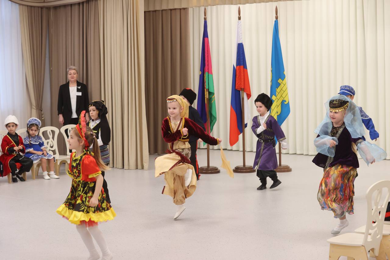 Ребята показали небольшой концерт, посвящённый Году единства народов России, и выступили в костюмах разных национальностей, проживающих в нашей стране.
