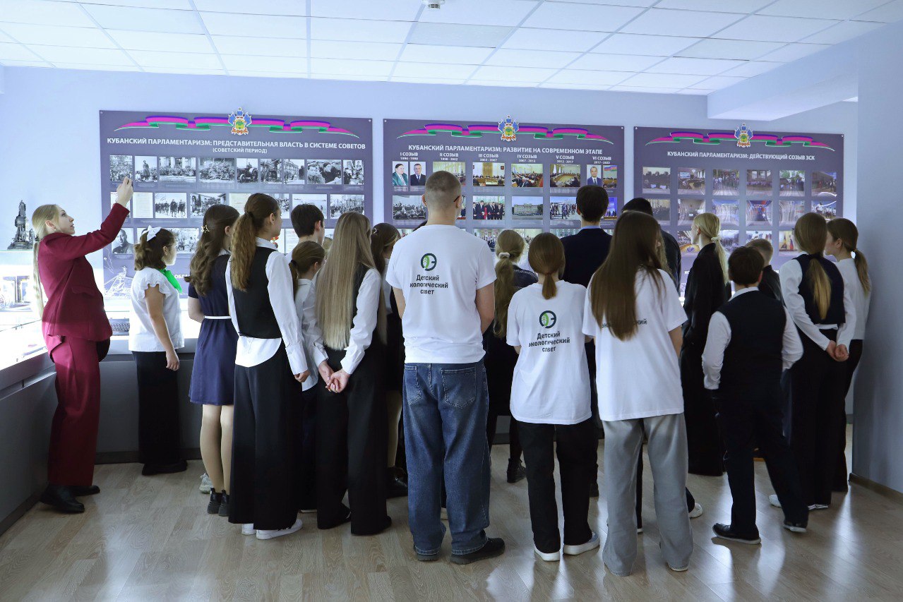 Сегодня в Законодательном Собрании Краснодарского края прошла экскурсия с посещением экспозиции по истории краевого парламента для руководящего состава Детского экологического совета края и актива детских экосоветов муниципальных образований, организованная по инициативе профильного комитета.