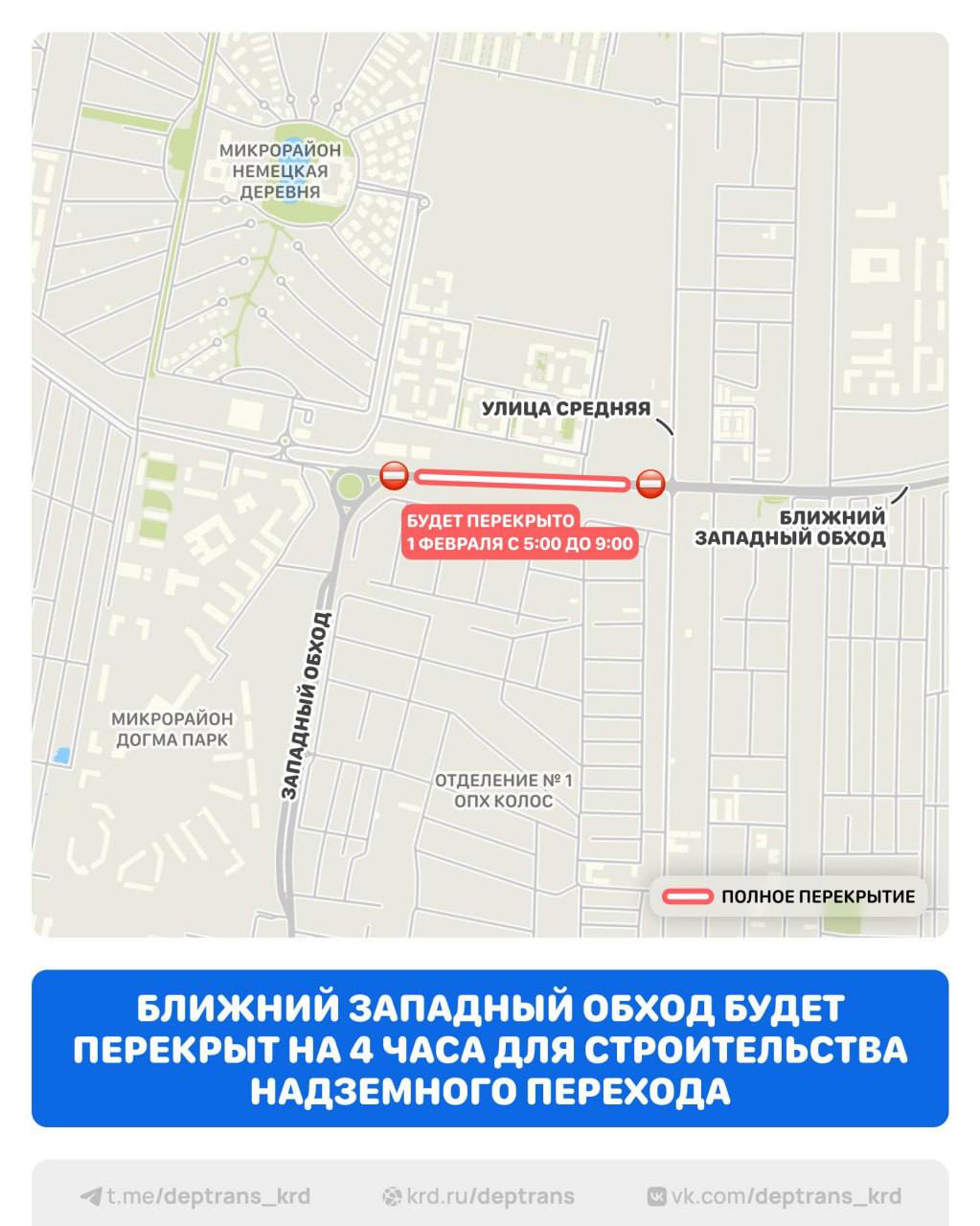 Ограничение связано со строительством надземного пешеходного перехода длиной 56 метров — это часть масштабного проекта по обустройству Западного обхода.