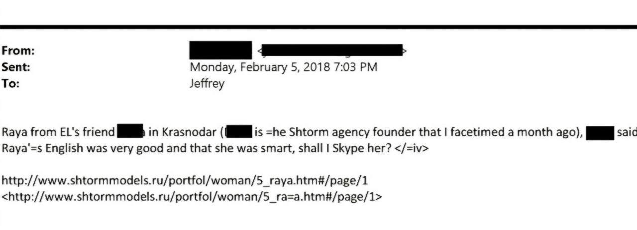 Из другого письма следует, что кто-то (имя замазано) помогал Эпштейну искать девушек в России: