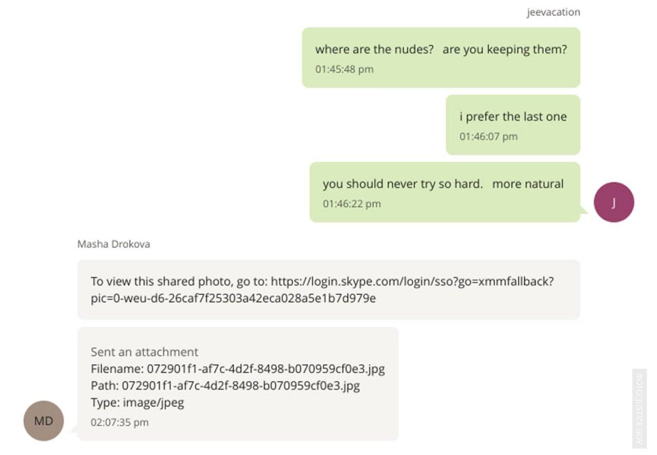 Эпштейн просил у Марии Дроковой нюдсы, советовал быть естественнее, и судя по выложенным Минюстом материалам, она не отказывала: