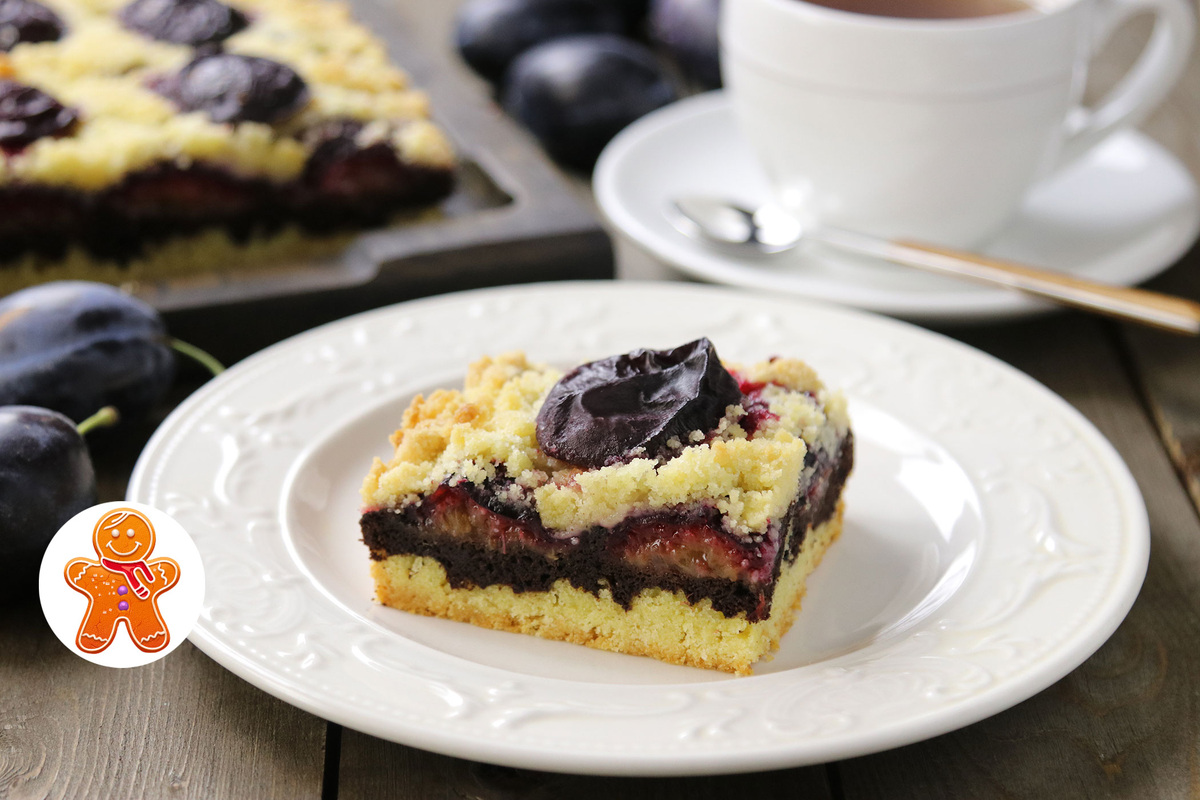 Отправьте пирог в разогретую до 200°C духовку на 15 минут. После этого присыпьте штрейзельной крошкой и, если остались сливы, добавьте их сверху. Выпекайте ещё 30-40 минут до золотистой корочки.