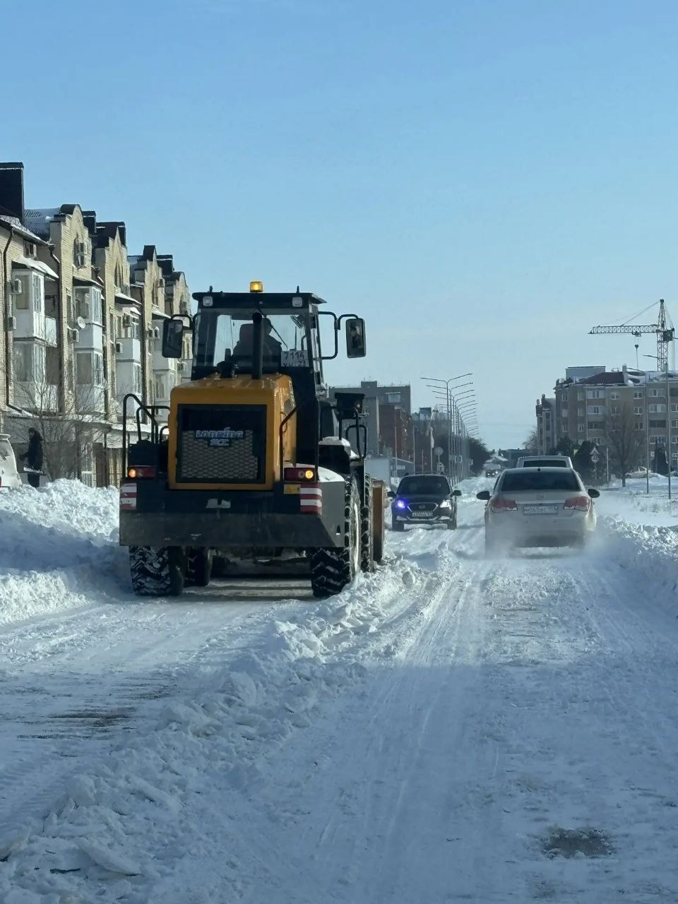 Последствия обильного снегопада с сильным ветром, который шёл в Ейске весь понедельник, коммунальщики и дорожники начали устранять ещё с вечера, как только осадки прекратились.