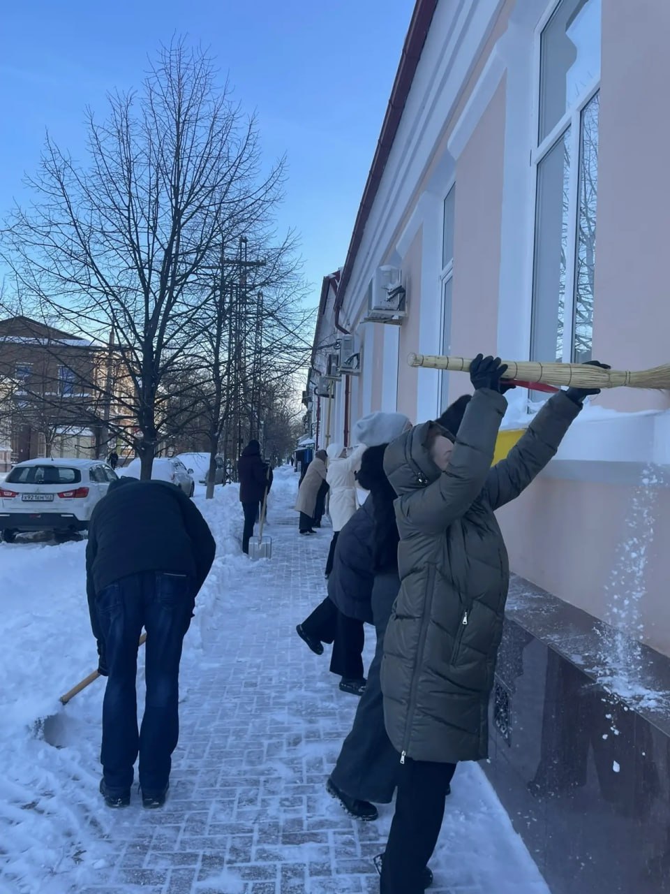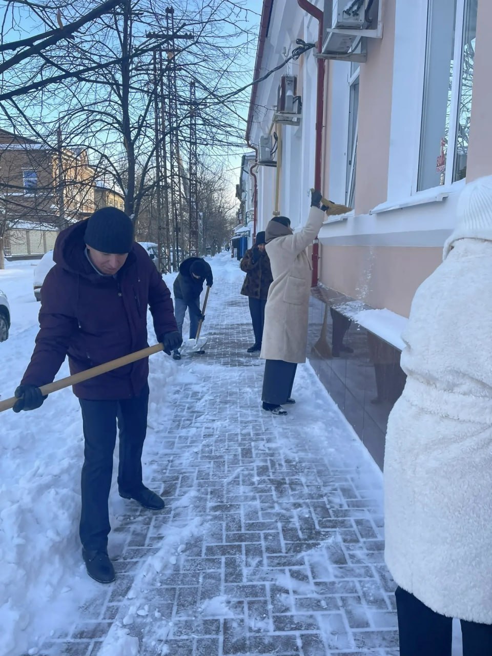 Сегодня еще до начала рабочего дня сотрудники финансового управления, вооружившись лопатами, провели субботник по очистке территории от снега.