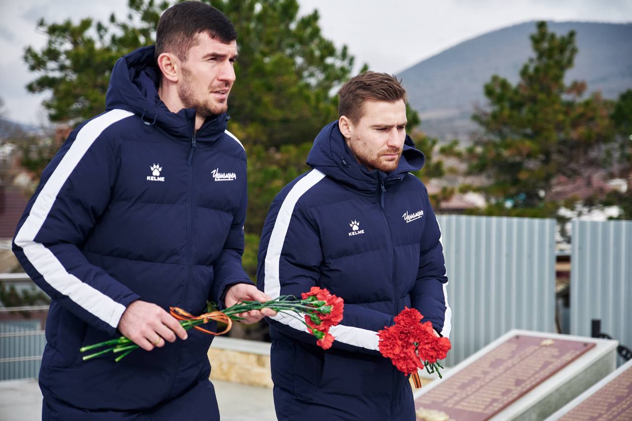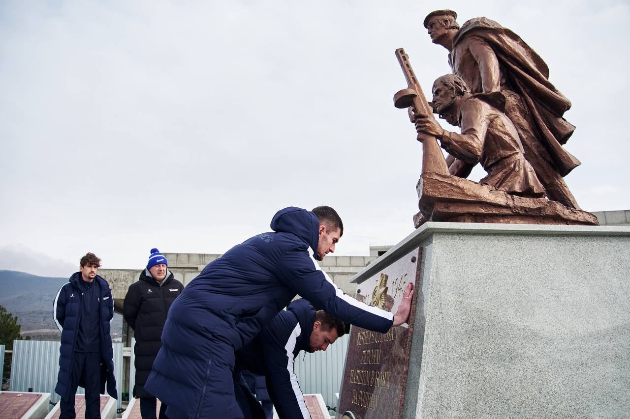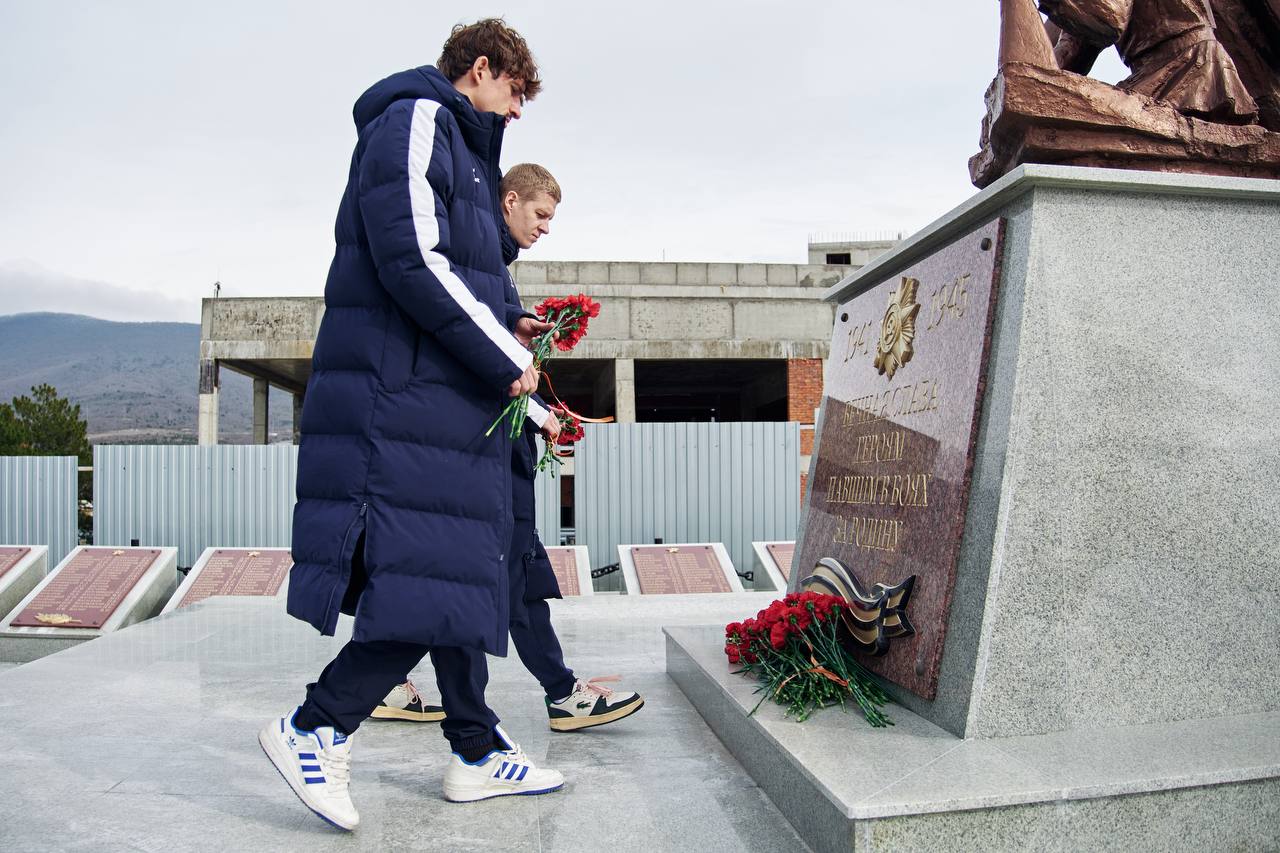 Наши футболисты вместе с начальником команды Сергеем Бурдиным возложили цветы к памятнику погибшим воинам, участвовавшим в Южно-Озерейской десантной операции у берегов Новороссийска.