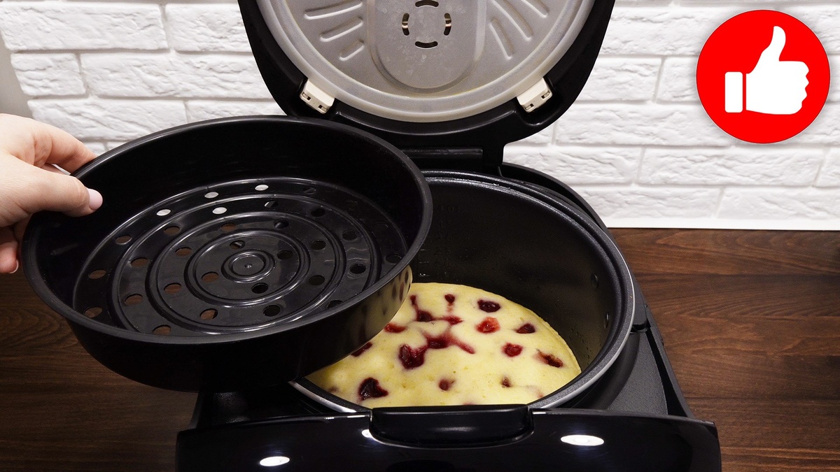 Получившееся тесто аккуратно вылейте в заранее смазанную маслом чашу мультиварки. Важно добавить в тесто вишню, распределив ее равномерно. Готовьте на режиме «Выпечка» или «Мультиповар» при температуре 130°C в течение 1 часа и 15 минут.