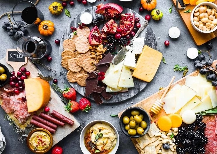 Сочетайте хрустящие крекеры с мягким сыром, сладкие фрукты с соленой ветчиной или острый соус с нейтральными овощами. Чем больше контрастов, тем более интересной будет закуска.