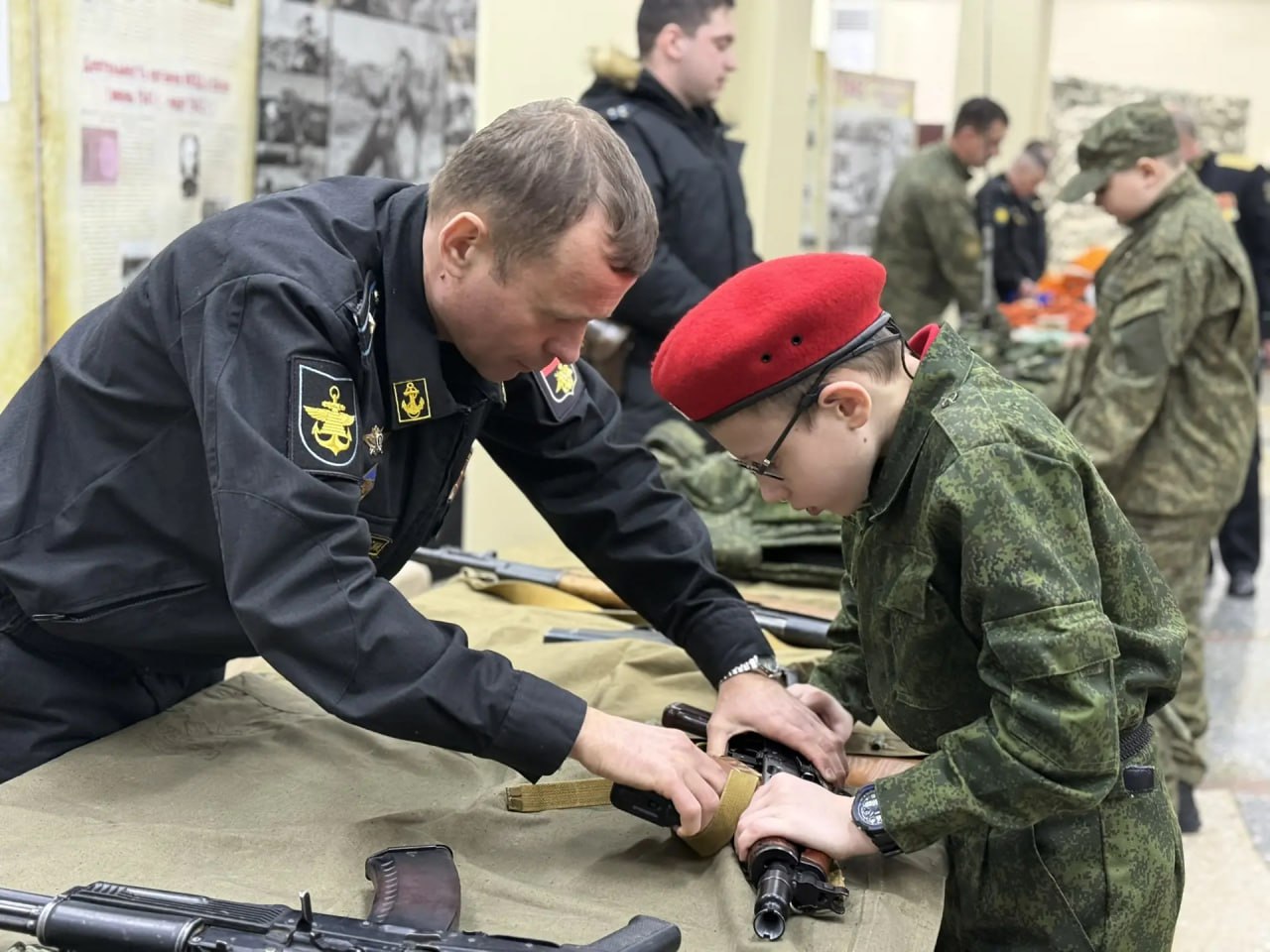В рамках мероприятия в фойе была организована выставка, где присутствующие смогли ознакомиться с макетами оружия, попробовать себя в сборке автомата и увидеть военную атрибутику.
