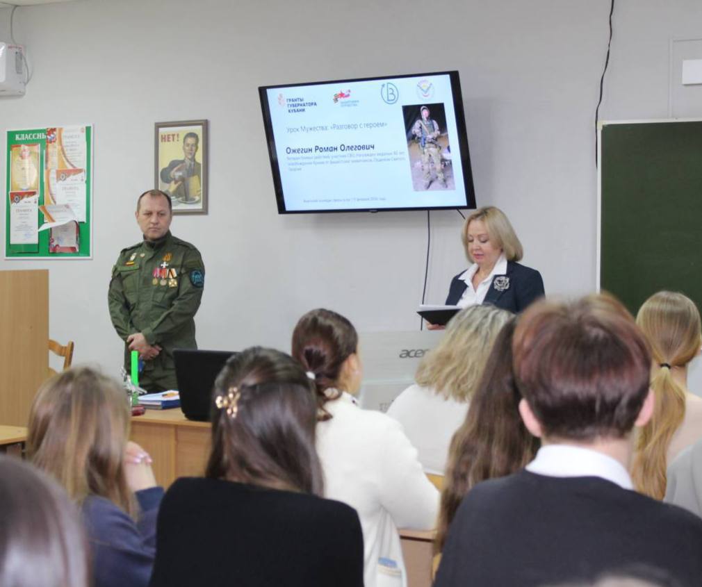 Со студентами встретились специалисты Центра «Вектор» и участник СВО Роман Ожегин, награжденный знаком отличия ордена Святого Георгия – Георгиевским Крестом IV степени. Мероприятие прошло в рамках проекта «Служба сопровождения участников специальной военной операции в Анапе «Мост в мирную жизнь», с использованием гранта Губернатора Кубани при поддержке Фонда «Защитники Отечества».