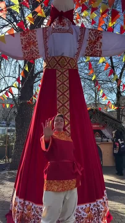 Масленица стартует через неделю, но в центре города уже открылась праздничная ярмарка с шестиметровым чучелом.