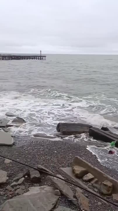 В посёлке Лоо (Сочи, Лазаревский район) сильный шторм разрушил набережную